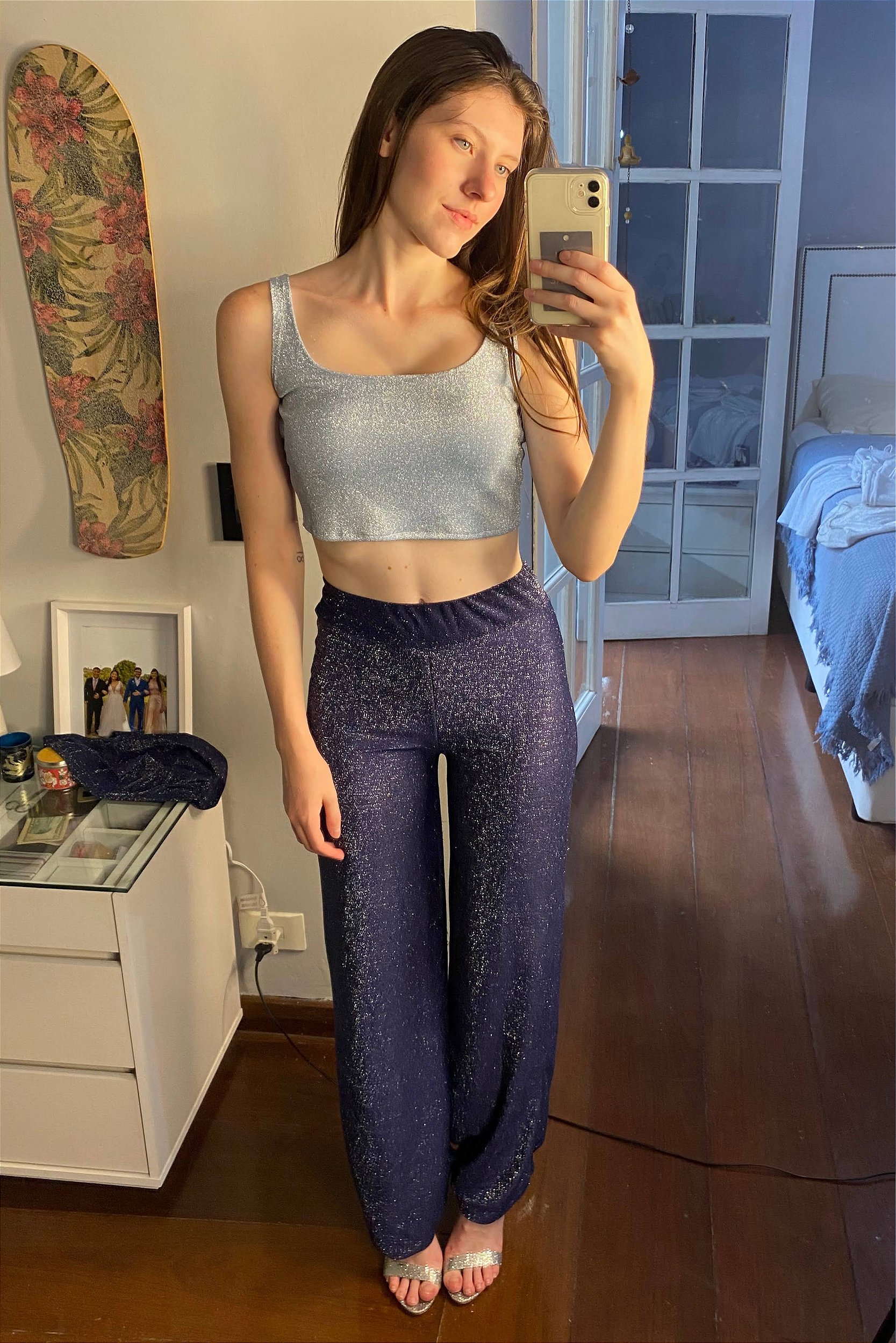 Calça Lurex Azul Marinho, feita por mim com muito brilho e estilo ✨