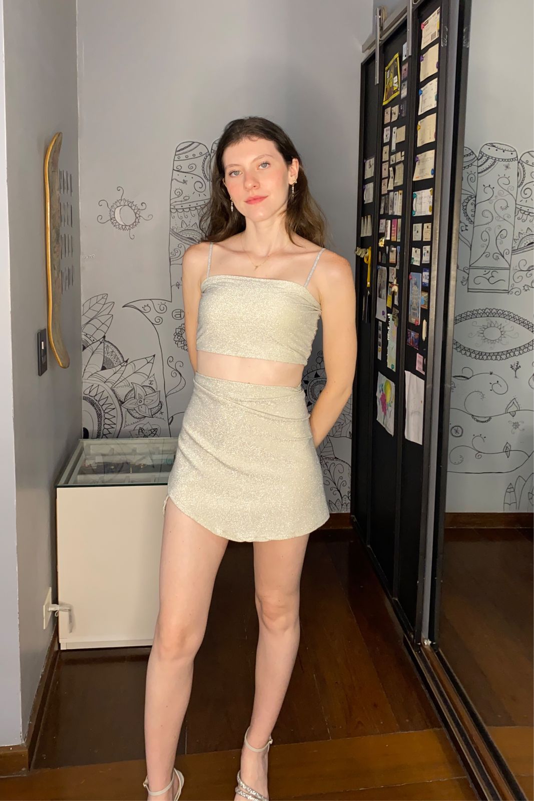 Saia Lurex Bege (off white, gold ou como preferir, rs), feita por mim com muito brilho e estilo ✨